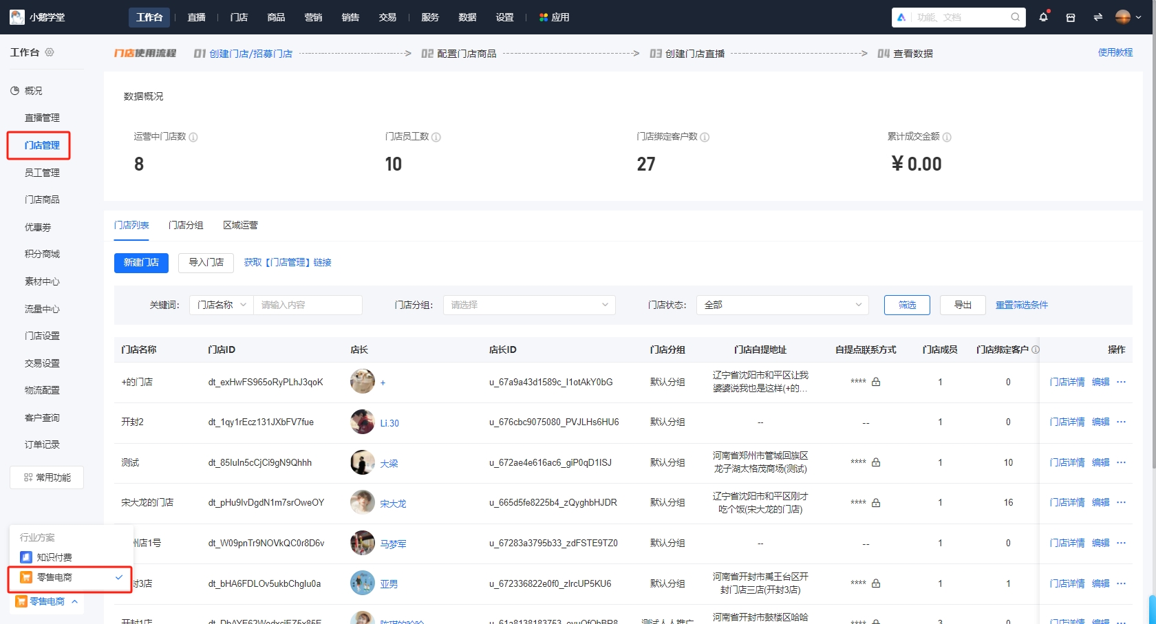 在快消品行業,線下門店是連接品牌與消費者的重要橋梁。然而,隨著門店數量的增加和業務規模的擴大,傳統的管理方式往往效率低下,難以滿足精細化運營的需求。小鵝通【門店】應運而生,為快消商家提供了一站式的線下門店管理解決方案,助力商家輕松實現數字化轉型。 1. 多門店統一管理,運營效率倍增 小鵝通【門店】支持商家創建并管理多個線下門店,將所有門店信息集中在一個平臺上,實現統一管理。商家可以清晰地查看每個門店的運...