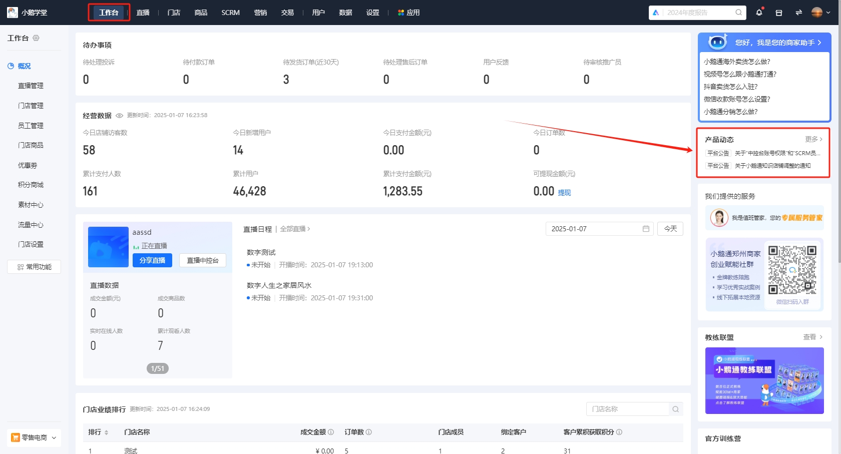 小鵝通為了更好地優化員工的組織管理和權限配置,進一步完善銷售、運營功能,提升店鋪整體經營效率,現統一知識店鋪管理臺、直播中控臺、SCRM三個產品的賬號登錄方式、角色權限和收費邏輯,并進行相應的功能入口調整。本次調整將于2025年1月15日正式生效,具體調整如下: 一、  新增企業微信登錄方式 【企微員工】掃碼或快捷登錄知識店鋪管理臺后,可直接進入銷售(原SCRM),無需二次掃碼登錄,跳轉更順滑。 【...
