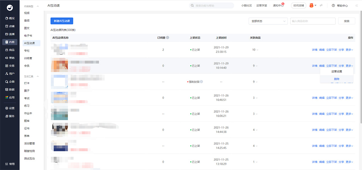 2、列表中點擊【更多】-【運營設(shè)置】,或點擊【詳情】;