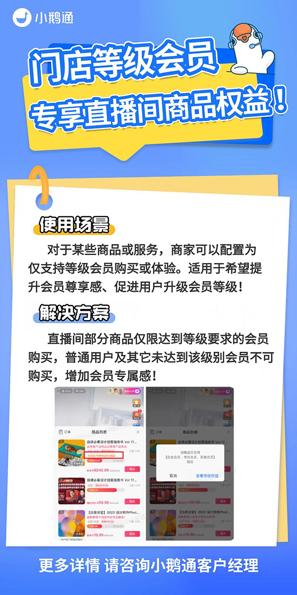 「門店等級會員」專享直播間商品權益!