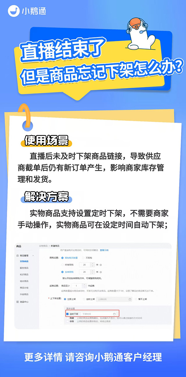 小鵝通商品「定時下架」功能,再也不怕超賣漏關商品鏈接~