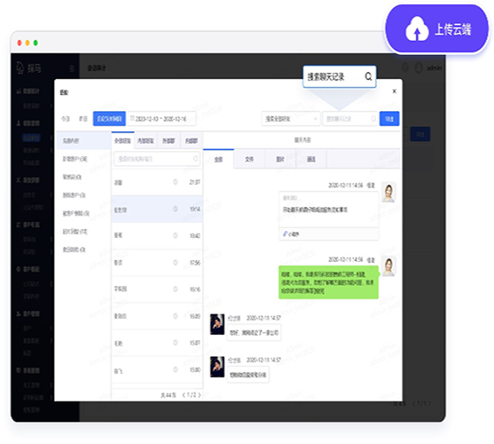 銷售和客戶的聊天內(nèi)容(文字,語音,視頻,文件,語音通話)自動上傳,永久保存;后臺可以實時查看,檢索,導(dǎo)出