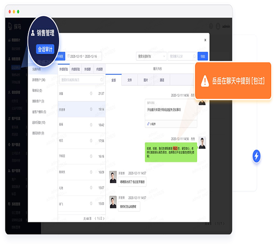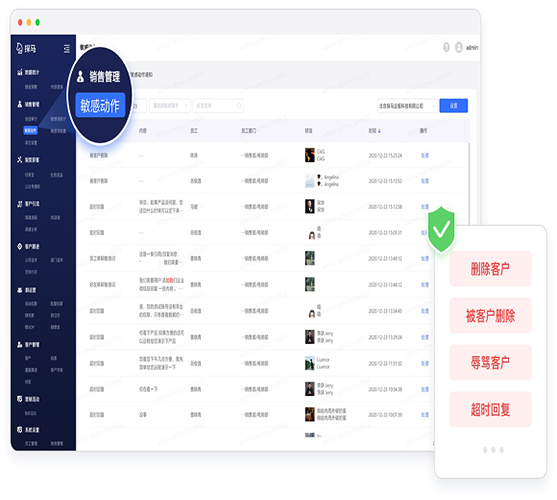 銷售刪除客戶好友,被客戶刪除,超時回復(fù)客戶,辱罵客戶等敏感動作,實時監(jiān)控,規(guī)范銷售的日常執(zhí)行